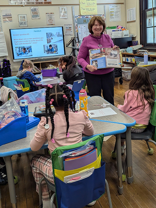“Today, author J.N. Courtney brought the wonder and curiosity of her new book Rats with Backpacks: Dr. Donna Kean and Her Work at APOPO to our 1st graders! We were thrilled to host Courtney as she and our students discussed her new non-fiction book, which tells the story of intelligent rats who save lives — and the scientist who studies and trains them.” (Allendale-Columbia School, Rochester, NY, Facebook page)